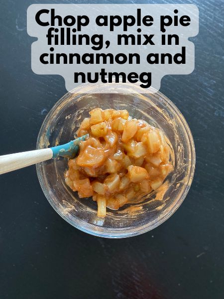 - Chop the apples in the pie filling into smaller pieces for easier layering and better texture