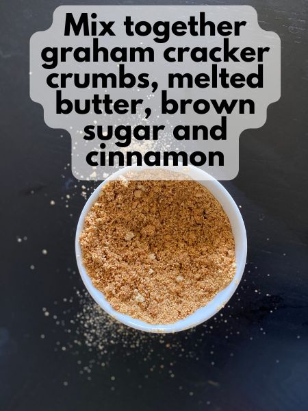 3. Mix together graham cracker crumbs, your leftover 1 teaspoon cinnamon, melted butter and brown sugar together to form the crust layer