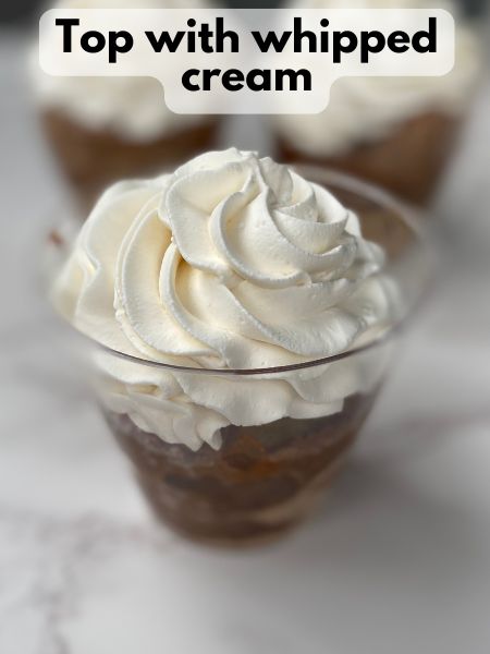 - Upgrade the whipped cream: If you want whipped cream that holds up for hours (great for potlucks or cozy gatherings), beat 1½ cups of heavy cream with ¼ cup powdered sugar and 1 tsp vanilla until stiff peaks form. Pipe it on with a star tip for a festive finish!
