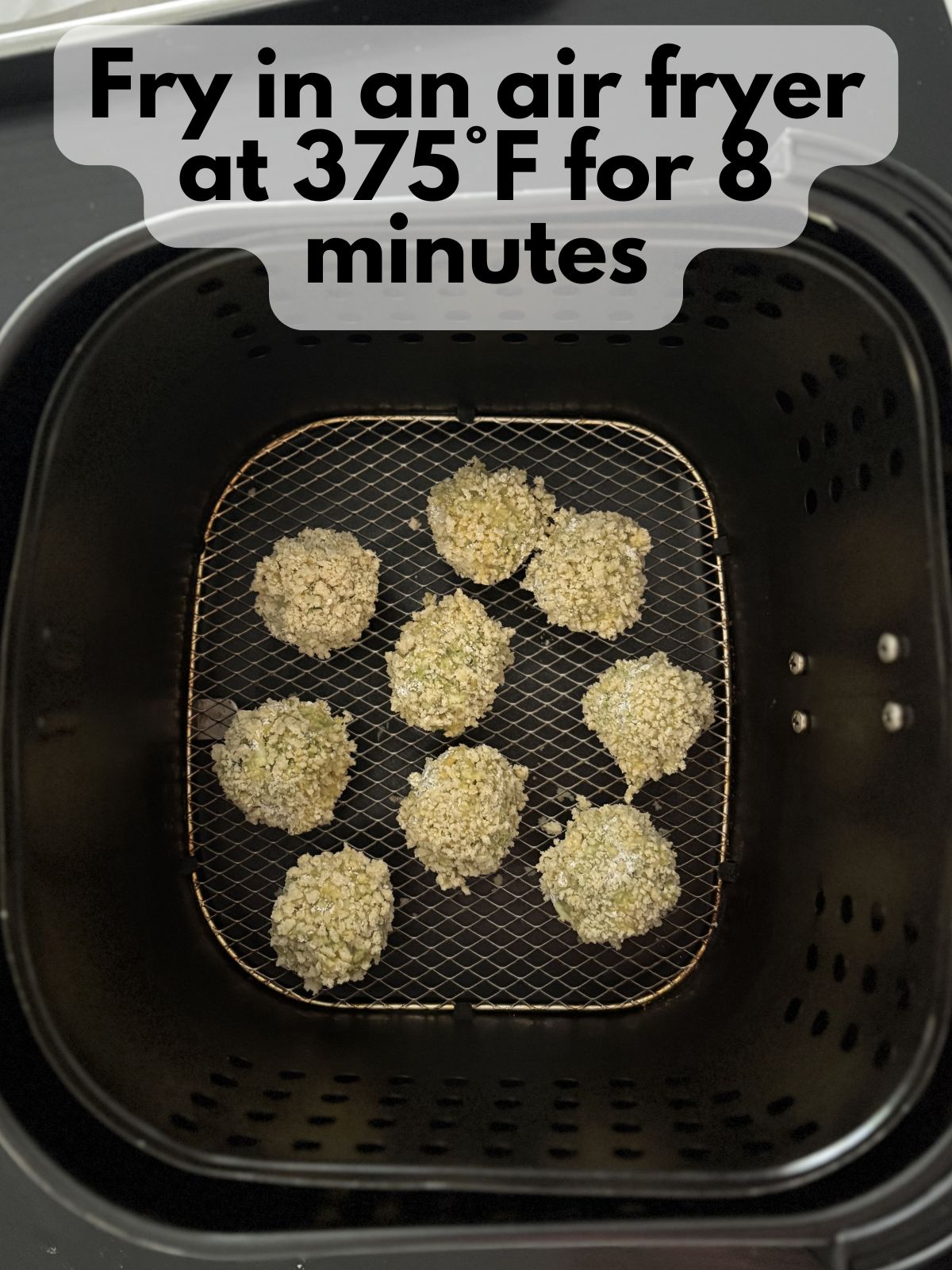 11. Air fry at 375°F for 8 to 10 minutes, flipping halfway, until golden and crisp and the cheese is melty.