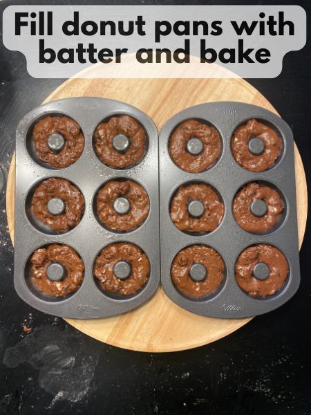 5. Fill the Donut Pan: Add batter to a piping bag and pipe the batter into the donut cavities, filling each about 3/4 full.