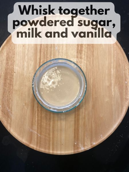 7. Prepare the Glaze: In a bowl, whisk the powdered sugar, plant-based milk, and vanilla until smooth. Adjust the consistency as needed by adding more milk or sugar.