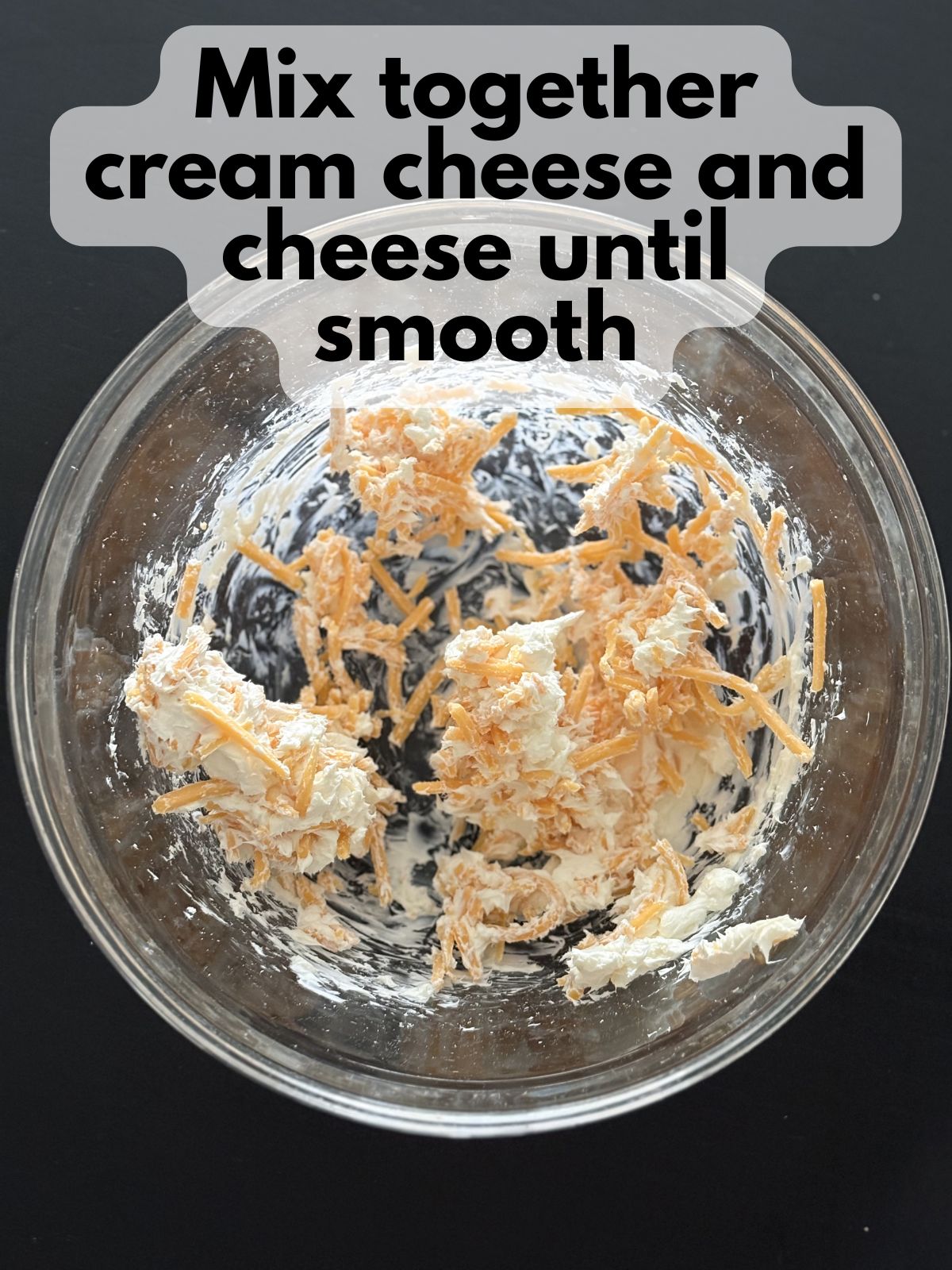 - In a medium bowl, add the softened cream cheese and shredded cheese, plus the diced green chiles if using.