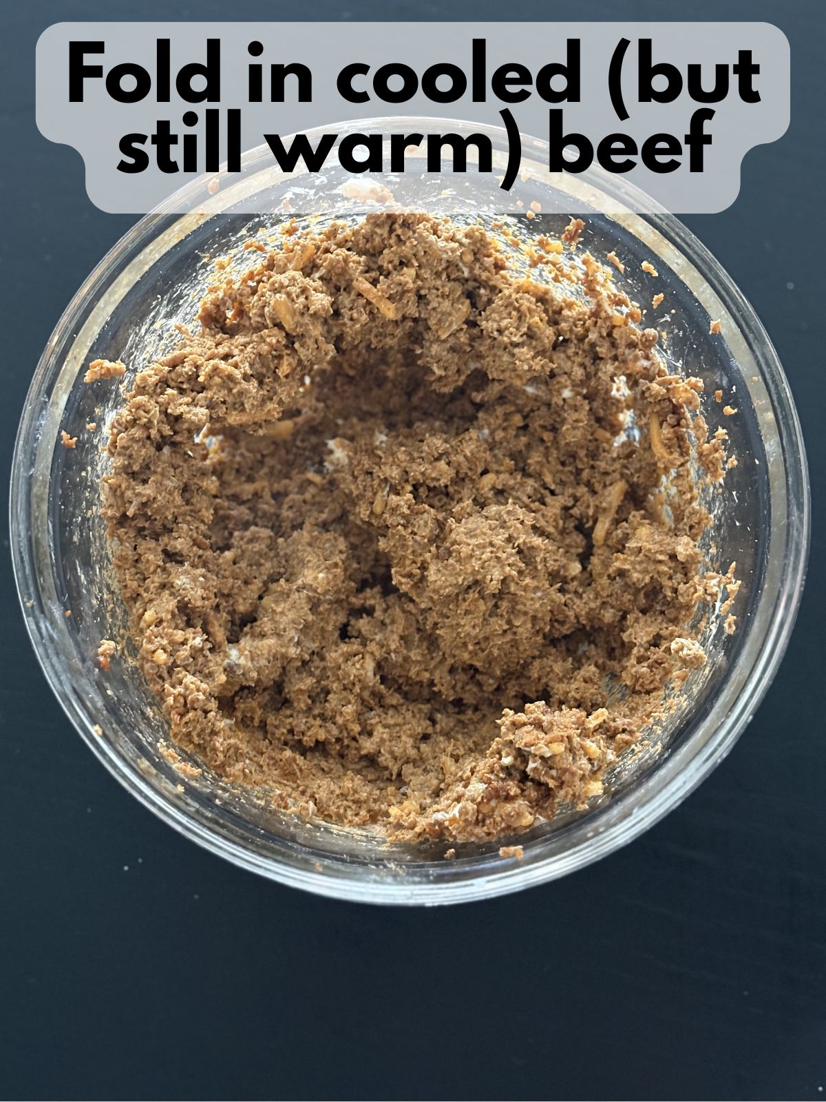 - Fold in the slightly cooled taco meat and mix until everything is well combined and evenly distributed.
