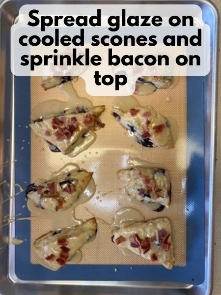 Enjoy your delicious blueberry scones with maple glaze and bacon topping! They’re perfect for breakfast or as a sweet treat any time of day.