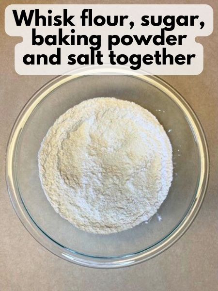 2. In a large mixing bowl, whisk together the flour, sugar, baking powder, and salt.