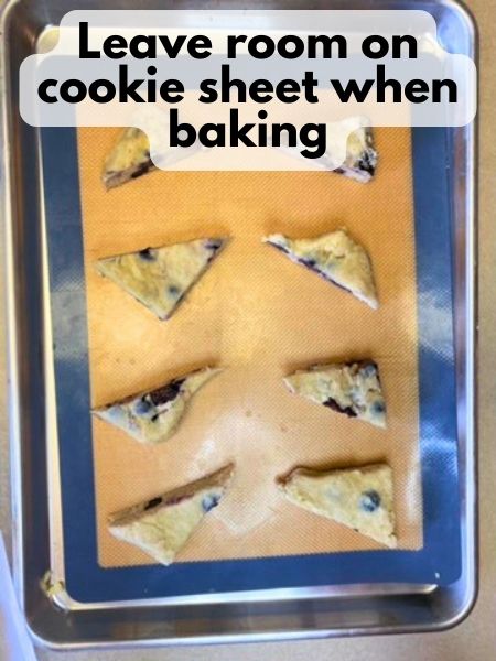 - Transfer the scones to the prepared baking sheet, leaving some space between them.