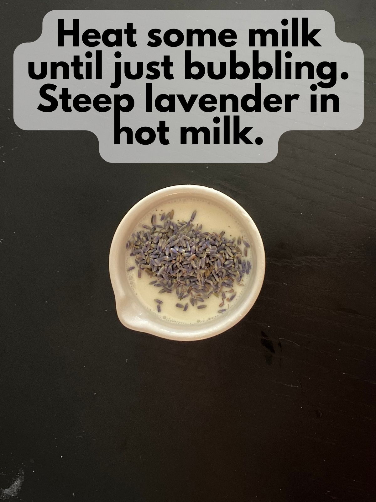- In a large bowl, beat the butter, powdered sugar and 1-2 tablespoons of lavender-infused milk together until smooth.Check your texture, if you want it thicker, add a bit more powdered sugar. If you want it softer, add a tiny splash more lavender milk.