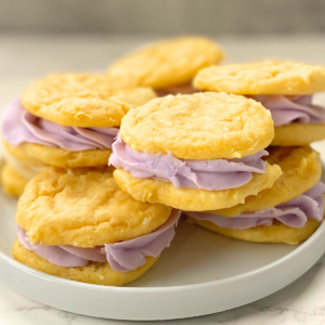 You will love this recipe for Lemon Lavender Whoopie Pies if you want something pretty, light, and elegant-looking without spending all day in the kitchen. These soft, pillowy lemon cake sandwiches with creamy lavender frosting feel special enough for Mother’s Day desserts, baby showers, or bridal brunches, but they actually start with just a boxed cake mix.. If you are always pinning Spring baking ideas and then run out of time to actually make them, this is the recipe that will finally happen; it is fast, simple, and looks like you bought it from a fancy bakery.