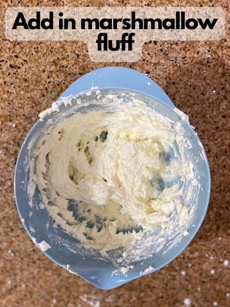 - Gently fold in the marshmallow fluff or marshmallow cream