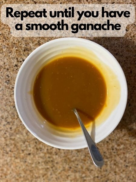 Keep microwaving your ganache for 30 seconds and stirring in between rounds in the microwave until it is smooth.