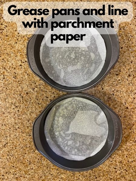 – Parchment paper cut into the size of your round pans (I use regular parchment paper, trace around my pan with a pencil, and then cut it out)