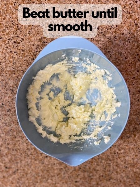 - In a large mixing bowl, beat the softened butter until creamy and smooth.
