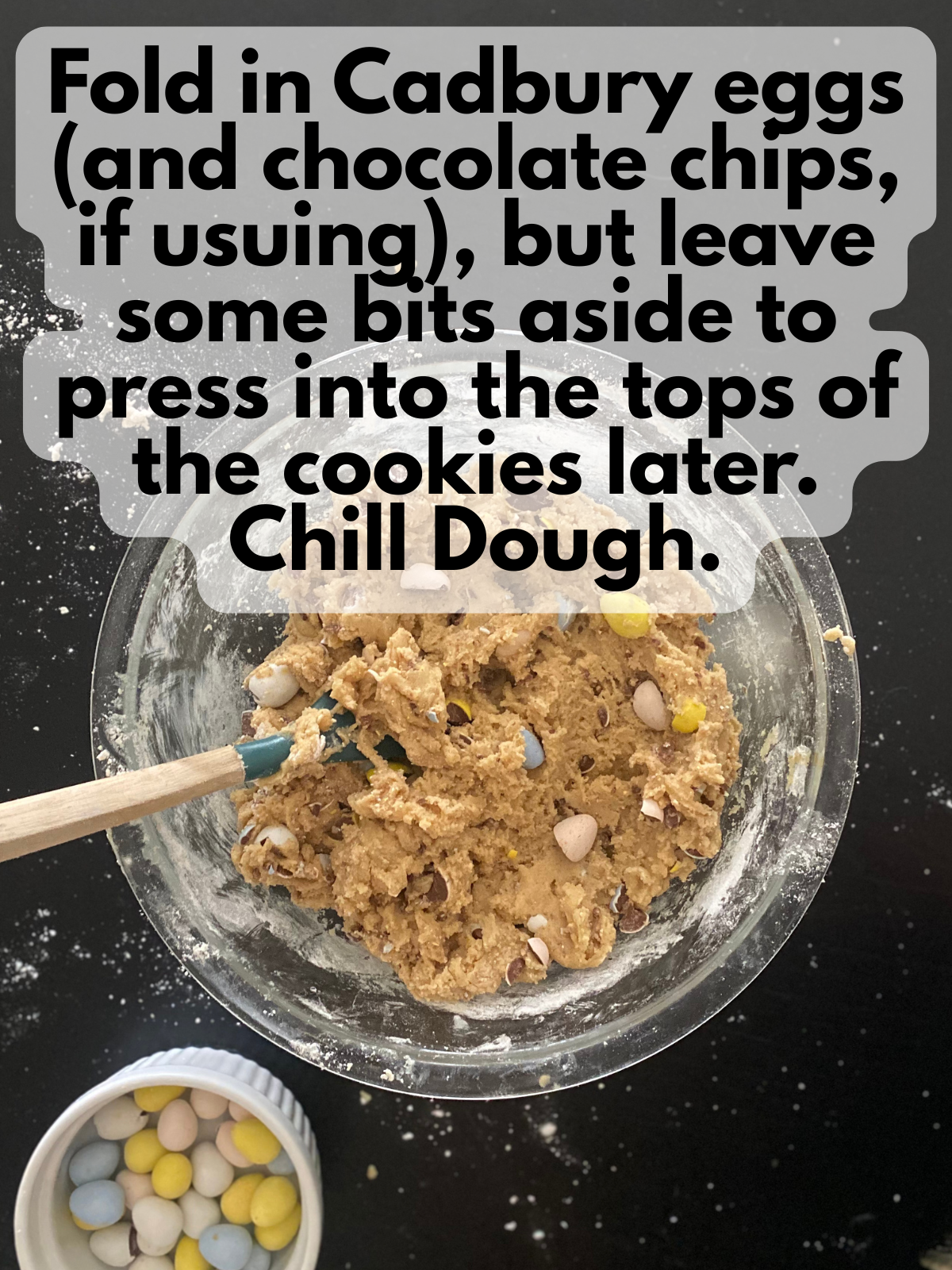 - Make ahead for busy weeks. Scoop the dough into balls (and press in some extra Cadbury egg bits), freeze on a tray, then transfer to a freezer bag. Bake from frozen at 350°F, adding 1 to 2 extra minutes to the bake time. This makes these cookies perfect for easy Easter desserts when you are juggling a lot.