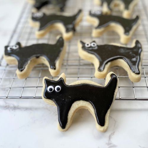 These Halloween sugar cookies decorated like black cats are a fun and easy treat for Halloween parties. With crisp sugar cookie dough and simple royal icing, they’re a spooky-sweet addition to any fall dessert table.