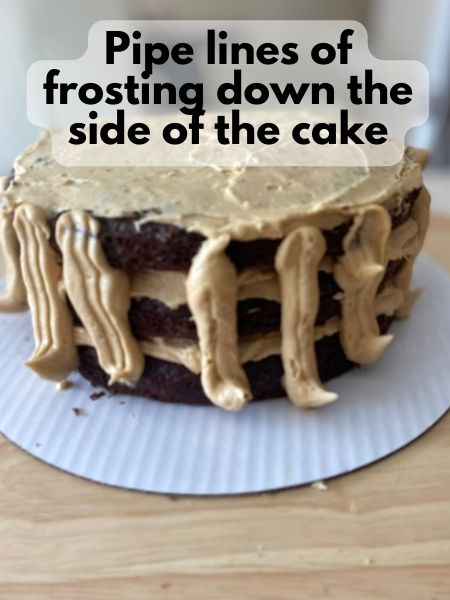 - Pipe some frosting in straight lines down the sides of the cake.