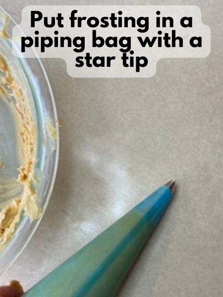- Put some more peanut butter frosting in a piping bag with a star tip this time. I like the Wilton 1M tip.