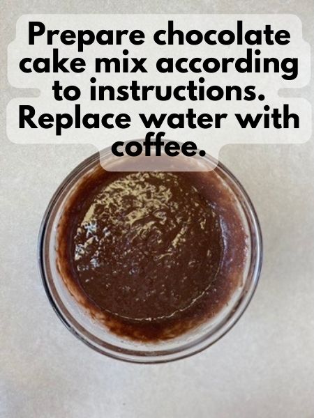 - Prepare your chocolate cake mix per the box instructions but replace any water with coffee (The coffee brings out the flavor of the chocolate)