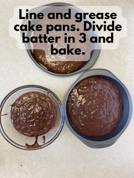 - Divide cake batter evenly in 3 and bake