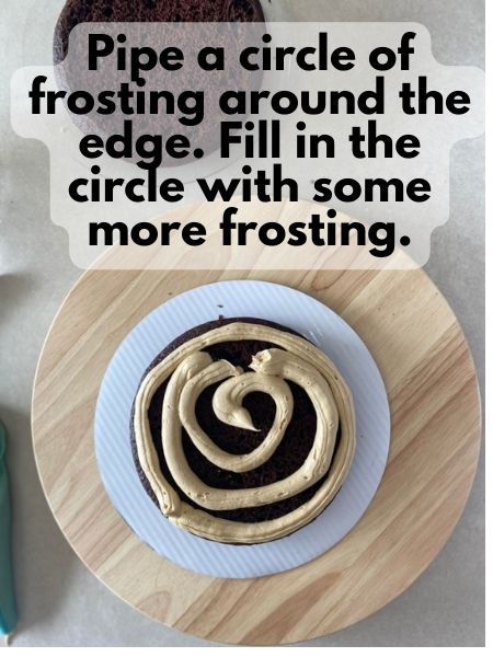 2. Make another circle of frosting around the top of your cake and fill in with a little frosting.