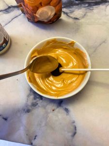 Salted Caramel Sauce: Like the kind used for ice cream sundaes. I admit, I couldn’t find a salted caramel variety when I went shopping, so I bought regular caramel sauce by Smuckers. In the end, it’s the salted caramel coating that makes the difference for this recipe. More on that in a second!