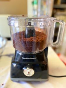 - Allow your cake to cool completely. Then, crumble the cake into very fine crumbs. I like to put mine in a food processor to make it easier.