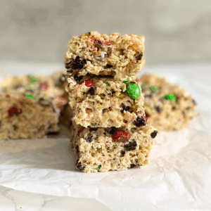 These Christmas Oreo M&M Rice Krispie Treats are festive, no-bake, and totally kid-friendly. The browned butter adds a toasty depth while the Oreos and red and green M&Ms keep them fun and colorful. They come together fast and are perfect for cookie exchanges, parties, or just an easy holiday treat for family movie night.