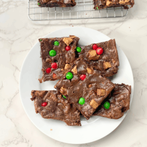Christmas Peanut Butter Brownies are one of those recipes you’ll come back to year after year. I love how easy they are, too! Just a box of brownie mix, some candy, and a little holiday spirit and you’re good to go.