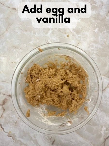 - Beat in the egg and vanilla extract until the mixture is smooth and creamy.