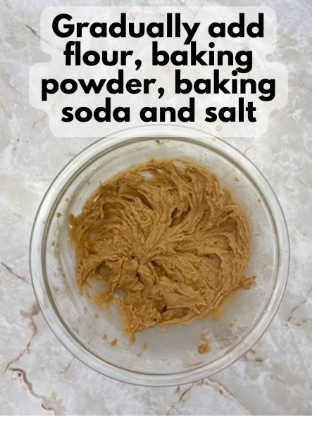 5. Add Dry Ingredients: Add in flour, baking powder, baking soda and salt. Gradually add the dry ingredients to the wet mixture, mixing until just combined. Be careful not to overmix.