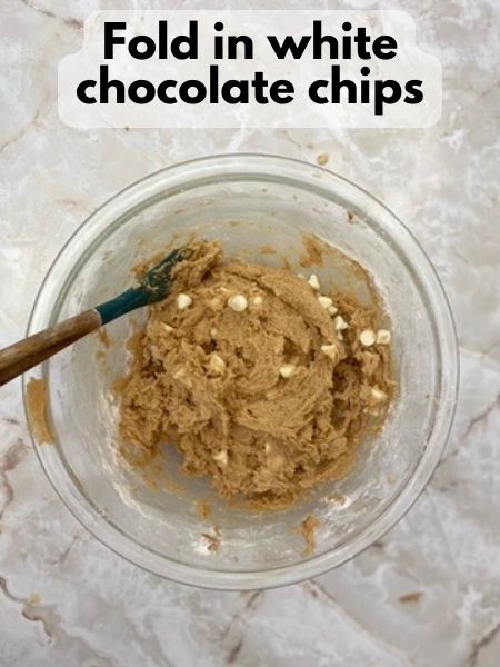 6. Add Optional Mix-Ins: Fold in some white chocolate chips. Optional: Add in some chopped up speculoos cookies for texture.
