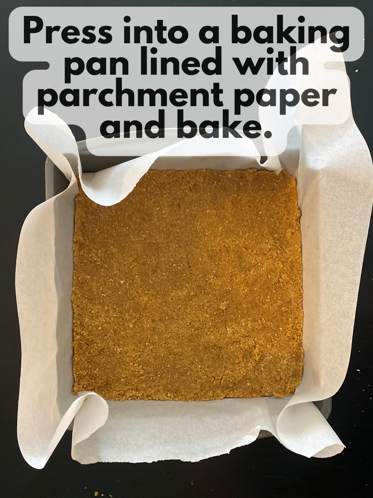 • Make the Crust: Mix crushed graham crackers, sugar, and melted butter. Press firmly into a greased or parchment-lined 9x9-inch pan.