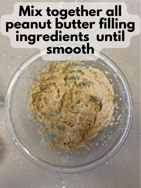 - Place all of your filling ingredients together in a mixing bowl. Start with just 2 tablespoons of heavy whipping cream. Beat all of the ingredients together until smooth. If the mixture seems too thick, add an extra tablespoon of heavy whipping cream.