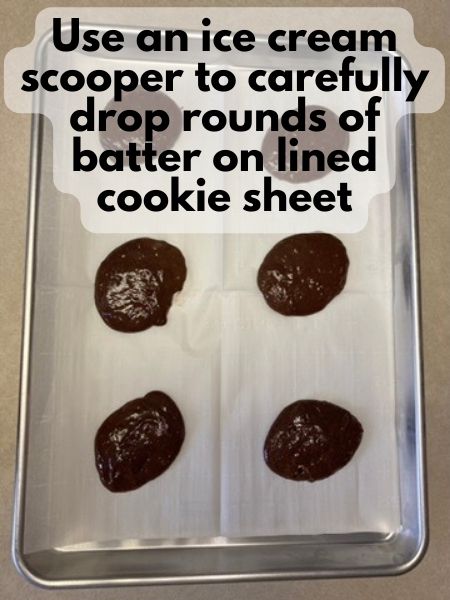 - Using a cookie scoop (or an ice cream scoop), place round dollops on a cookie sheet lined with parchment paper. Leave plenty of space between them so they can expand. I fit only 6 per cookie sheet with the size of my scoops.