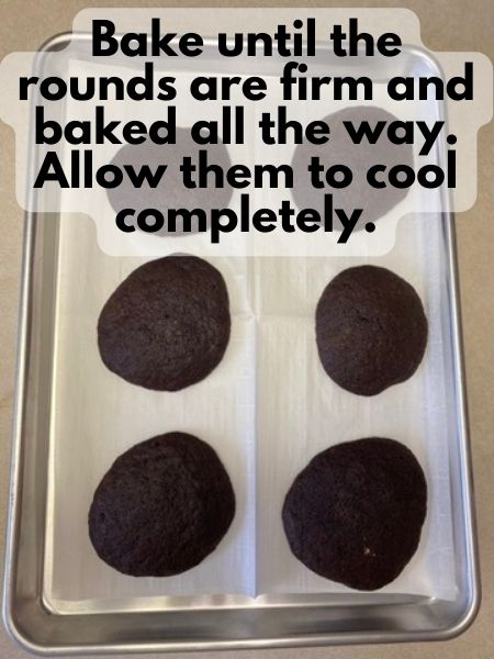 - Bake your whoopie pie rounds for 8-10 minutes, or until a toothpick inserted comes out clean and your round is firm in the middle.