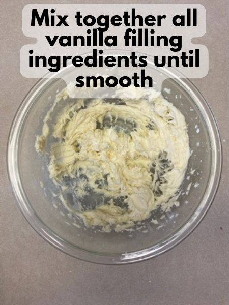 - Decide whether you want vanilla filling, peanut butter filling, or both. If you want just one flavor of filling, double the measurements from above to fill all of your whoopie pie rounds. If you want both flavors, make one batch of each filling in separate bowls.