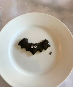 While the icing is still wet, add the eyes (if using) and sprinkle with black sanding sugar. You can also leave your bat without sanding sugar, or try to mix up the colors and maybe add some purple to see what you get.