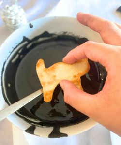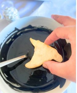 - Use your fingers to wipe off the excess icing. I know: gross! This is totally optional, of course. I wash my hands obsessively when I’m baking, so I felt this was safe to do. It saved me a lot of time in getting the excess icing off my cookies, as you really only want a thin layer of icing and I didn’t feel like waiting around for it to naturally drip off. But now my finger tips are all black. You can choose what you prefer!