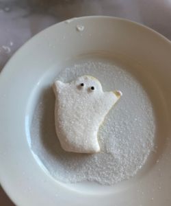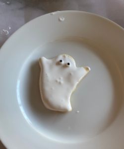 Optional: You can use your small icing bottles to draw little bow-ties on your ghost, or give it any other decoration you’re able to draw in icing.