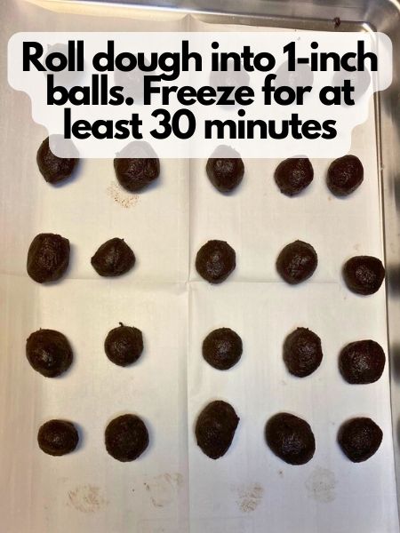 • Roll your dough into 1-inch balls and place on a cookie sheet lined with parchment paper.