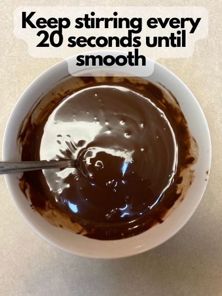 crowaving your chocolate for 20-30 second intervals and stirring in between each round in the microwave until your chocolate is smooth and liquidy.