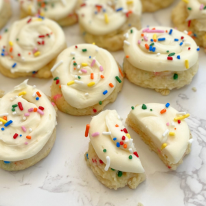These funfetti cake mix cookies with cream cheese frosting are soft, colorful, and so easy to make for birthdays, parties, or bake sales. Made with a box of cake mix and topped with homemade cream cheese frosting, they are a simple dessert that looks fun and festive without a lot of work.