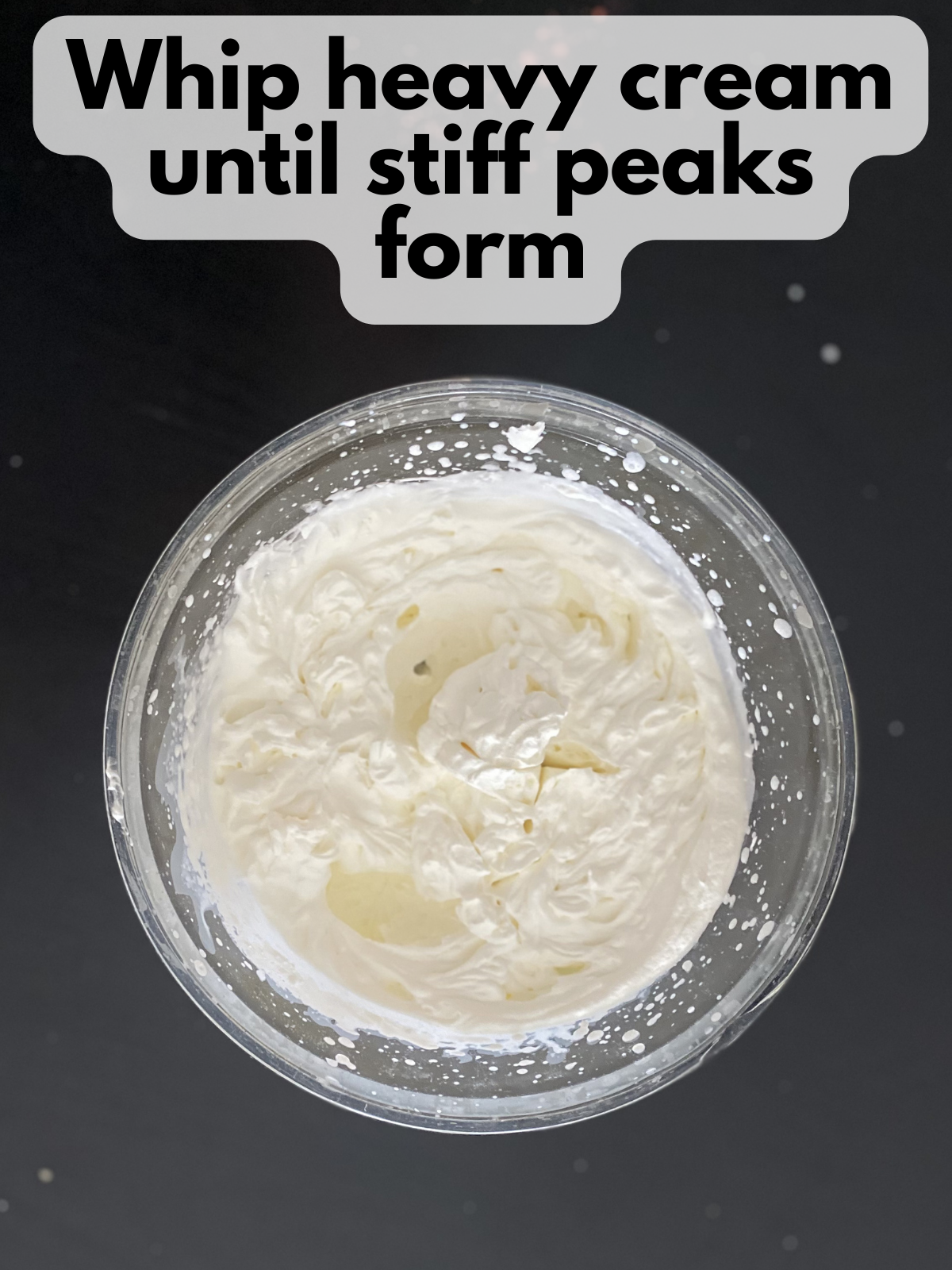 4. In another bowl, whip the heavy cream until stiff peaks form.