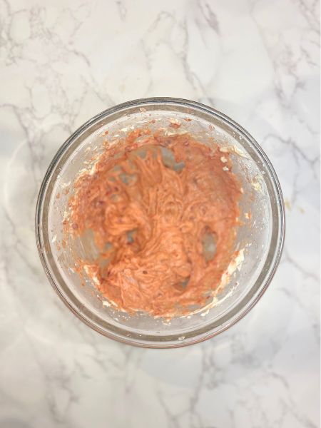 - Slightly melt guava paste in the microwave and quickly beat into cream cheese mixture.