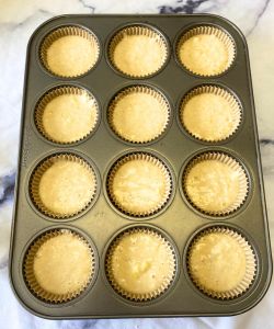• Preheat oven to 350°F and line a muffin tin with cupcake liners
