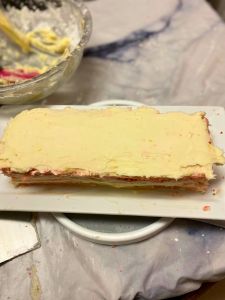 9. Smooth your top layer with an offset spatula so that it’s nice and flat