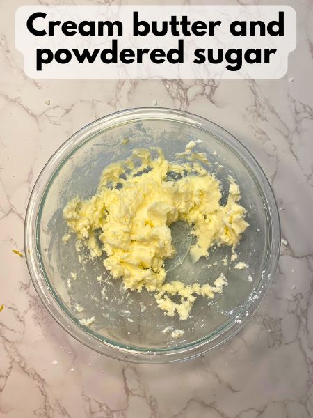 - In a large mixing bowl, cream the butter and powdered sugar until smooth