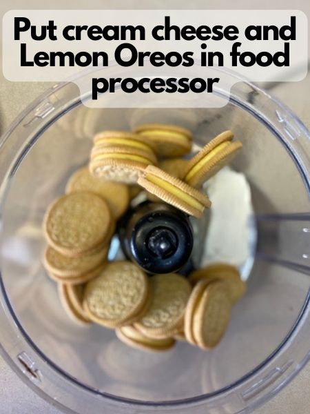 • Place your cream cheese and Lemon Oreos in a food processor