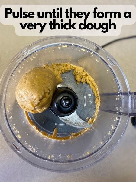 • Pulse until you get a dough with a thick, Play-Dough-like consistency. If you don't get that, add a little more cream cheese a teaspoon at a time