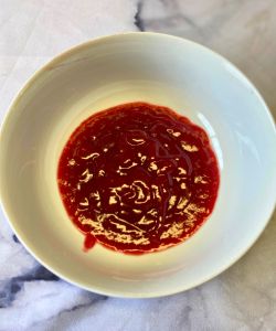 - Use the back of a spoon and press the raspberry mixture through the sieve. Collect the remaining raspberry sauce in the bowl, and throw out the separated seeds.